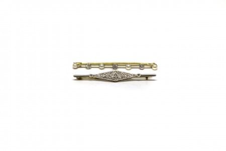 3130. Lot de deux broches barrettes serties de perles et de diamants t...
