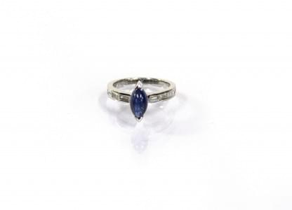 3160. Bague sertie d'un saphir en cabochon épaulé de diamants taille b...