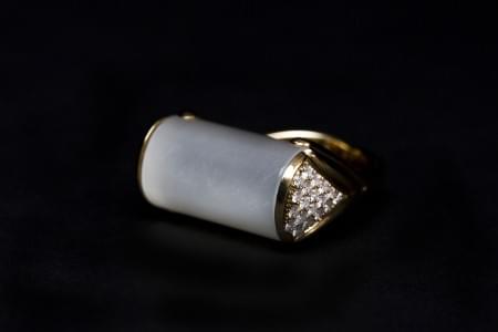 3162. Bague sertie d'une pierre de lune épaulée d'un pavage de diamant...