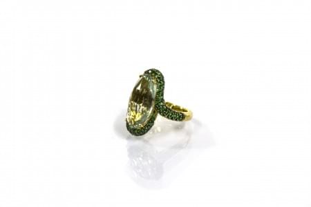 3164. Bague sertie d'une prasiolite taille fantaisie entourée d'un pav...