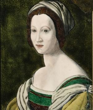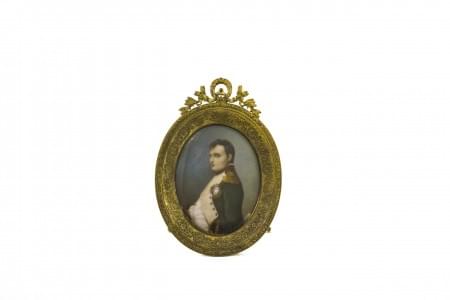 Jeune femme au chapeau, miniature sous verre, 5x4 cm