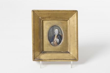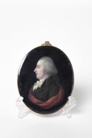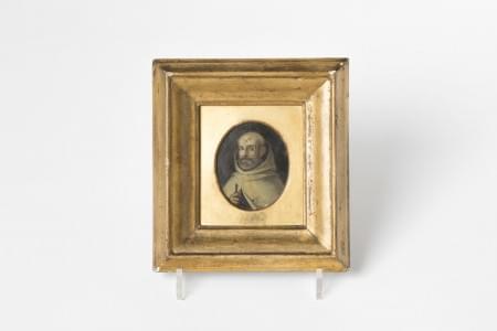 Portrait d'un religieux au manteau blanc, miniature ovale sur cu...