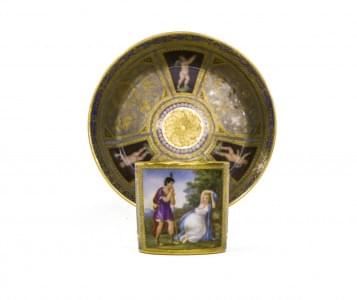 Vienne, porcelaine, à décor de scènes galantes, H 6 cm