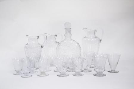Cristal, comprenant: 12 verres de différentes tailles et 2 caraf...