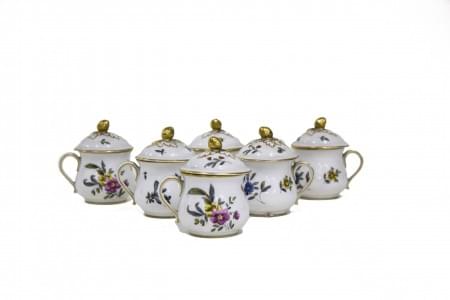 Porcelaine, comprenant: théière, crémier, sucrier, deux tasses e...