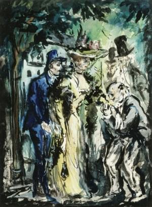 Dîner officiel, aquarelle sur papier, signée et datée 1944, 29x4...