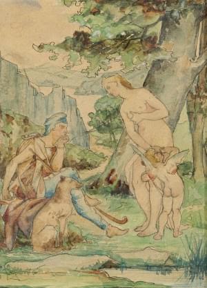 Scène mythologique et allégorie, paire d'aquarelles sur papier,...