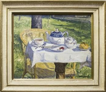 Petit déjeuner, huile sur toile, signée, 49x60 cm