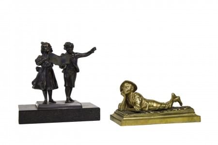 Un groupe et une statuette en régule et laiton, 11 et 13 cm