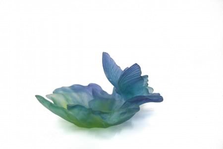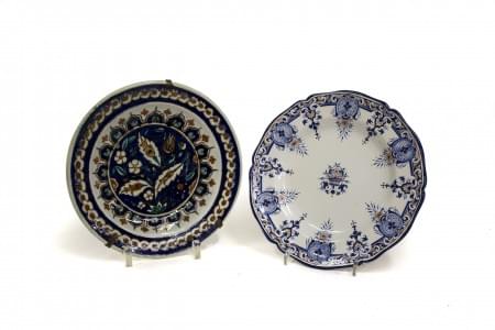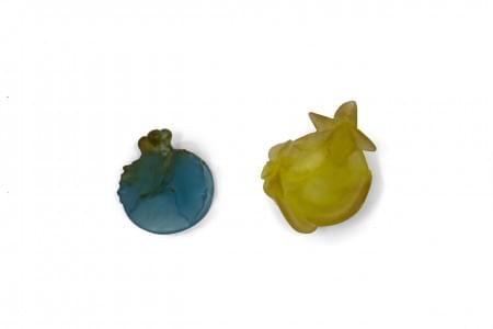 Pâte de verre bleue et jaune, D 6,5 et 7 cm