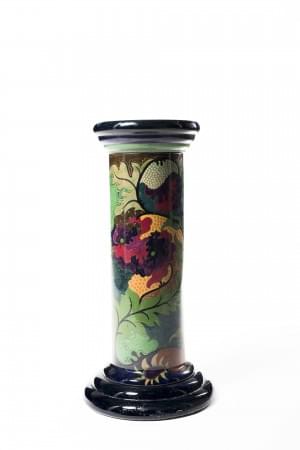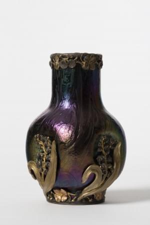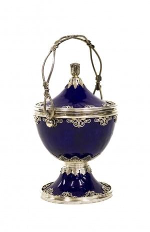 Céramique émaillée bleu nuit, monture en argent, H 20 cm
