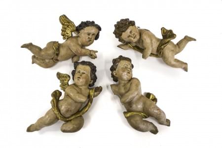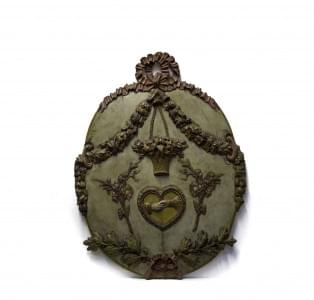 Bois sculpté polychrome à décor de guirlandes et fleurs, 55x43 c...