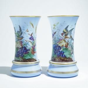 3828. Paire de grands vases rouleaux en opaline lavande, milieu XIXe s