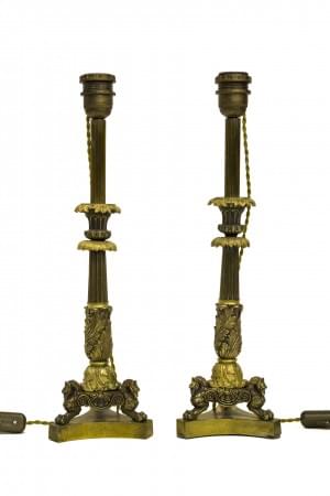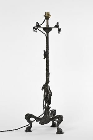 3875. Pied de lampe tripode dans le goût antique, XIXe s