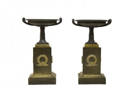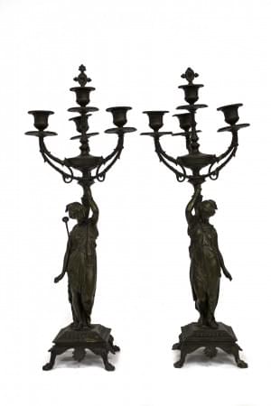 A décor de palmettes, pieds griffes et homme drapé, bronze à pat...