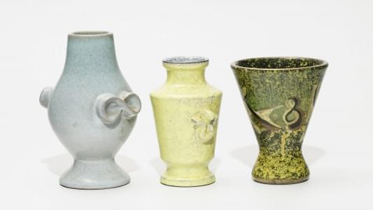 Trois coupes, céramique émaillée fourrure de lièvre et polychrom...