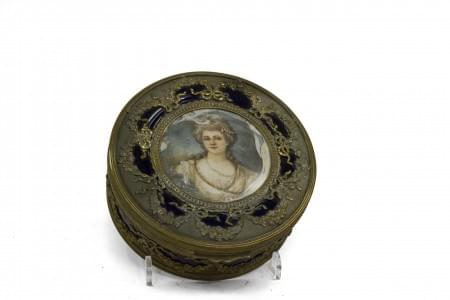 3850. Boîte ovale à décor d'un putto endormi et une autre à décor de f...