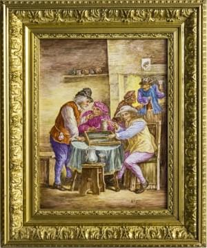 3879. Suite de quatre plaques en porcelaine d'après David Teniers