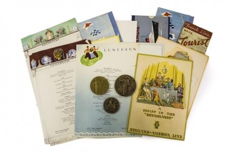 3889. Trois médailles et un ensemble de cartes et menus de la CG Trans...