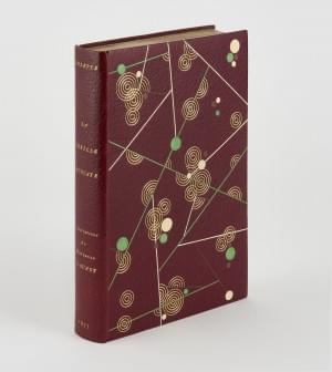 In 4°, maroquin parme, décor mosaïqué sur les plats et le dos, c...