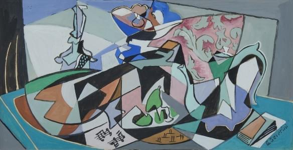 Composition cubiste, gouache sur papier, signée, 17x33 cm. Nous...