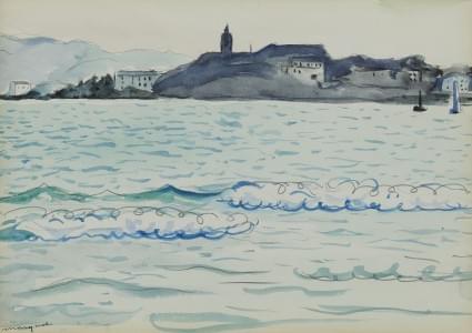 Fontarabie et la Bidassoa, aquarelle sur papier, signée, 17x24,5...