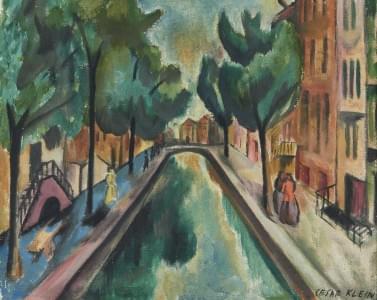 Canal, huile sur toile, signée et datée 1917, 50x63 cm