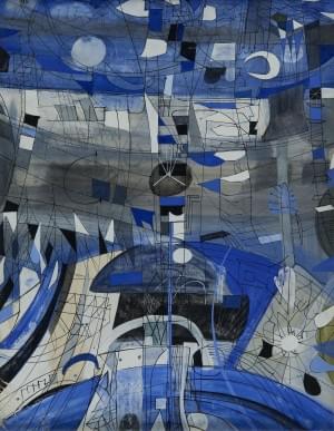 Moment in Blue, gouache et encre, signée, 50x37,5 cm.