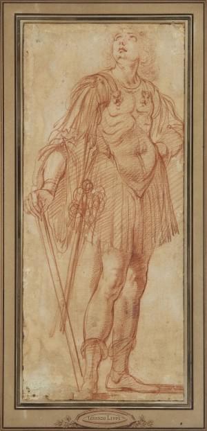 Etude pour un personnage à l'armure, sanguine sur papier, 40x17...