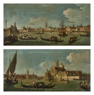 Vues de Venise, paire d'huiles sur toile, 38x80 cm