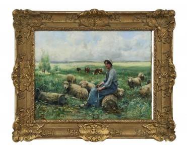 La gardienne de moutons, huile sur toile, signée, 47x61 cm
