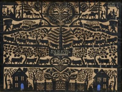 Poya, maisonnettes, vaches et scènes paysannes, découpage, daté...