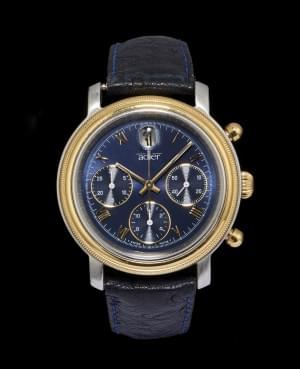 Cadran bleu, aiguilles et index bâtons dorés, ref 3738/100J-001,...