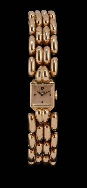 Cadran noir, aiguilles dorées, or 750, L 17 cm, poids brut 46 g