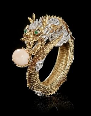 918. Bracelet ouvrant à motif de dragon pavé de diamants