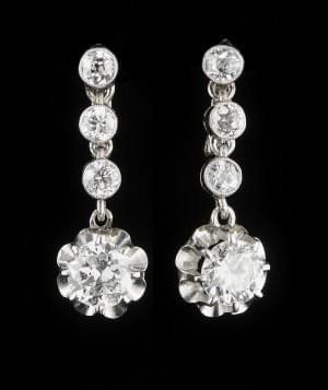 922. Pendants d'oreilles retenant des diamants taille ancienne sur ch...