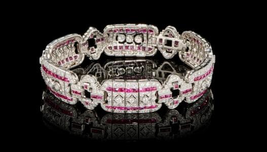 Pavé de diamants (env. 3,9 ct) et de rubis calibrés, platine 900...