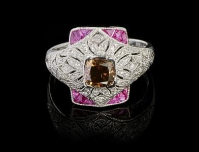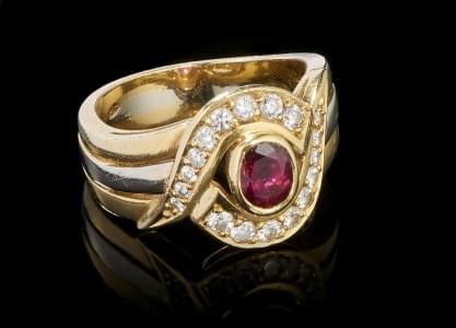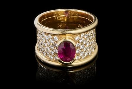 962. Bague-pendentif sertie d'un rubis taille ovale (1,3 ct)