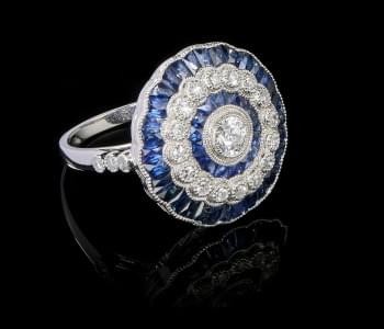 Centrée d'un saphir taille ovale (env. 0,4 ct) entouré de saphir...
