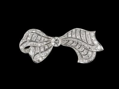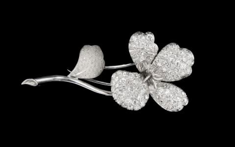 Entouré de diamants pouvant se transformer en pendentif, or gris...