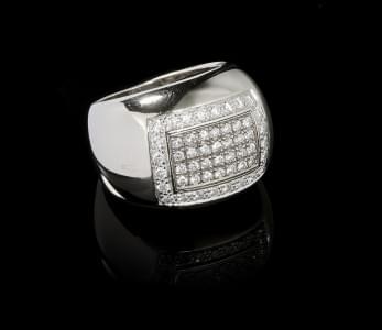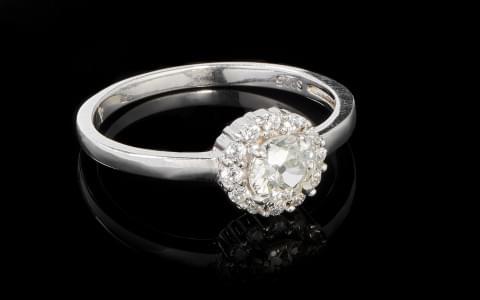 Entouré de diamants, or gris 750, doigt 52-12, poids brut 4 g
