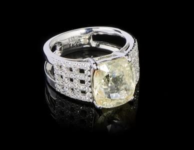 950. 5332*Bague sertie d'un saphir jaune taille coussin (env. 6,8 ct)...