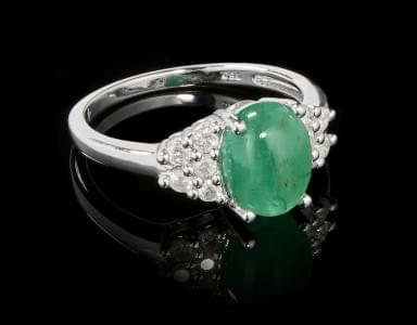 953. 7231*Bague sertie d'une émeraude taille cabochon ovale (env. 2,2...