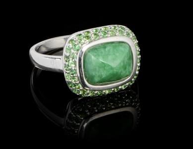 954. Bague sertie d'un jade en pain de sucre entouré de tsavorites