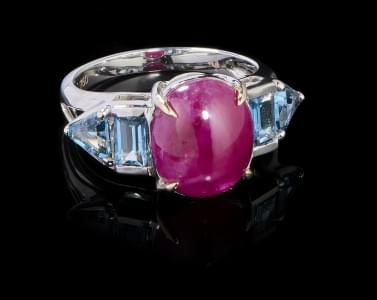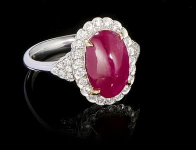 966. Bague sertie d'un rubis taille ovale cabochon (env. 3 ct)