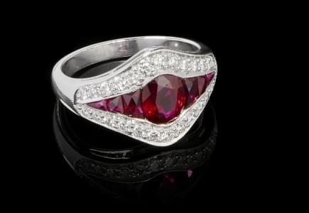 Epaulé de rubis calibrés et entouré de diamants, or gris 750, do...