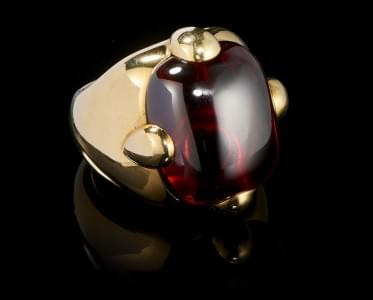 977. Pomellato, bague "griffe" sertie d'un grenat taille cabochon (en...