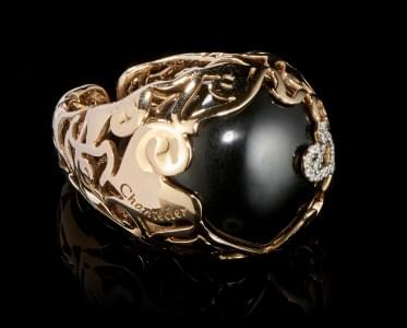 978. Chantecler, bague sertie d'un jade noir (D env. 20 mm)