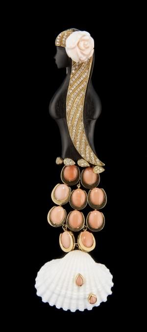 Coquillage, corail et pavée de diamants (env. 0,8 ct), or 750, H...