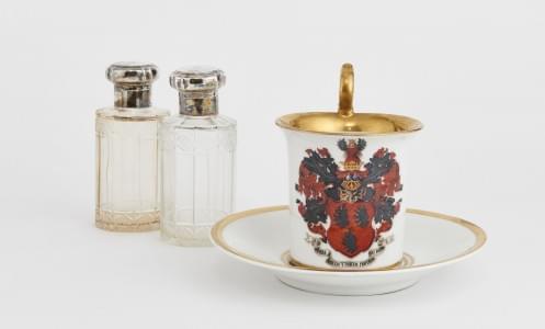 1018. Tasse et deux flacons armoriés Watteville
